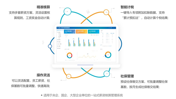 薪資核算管理系統是一款幫助企業進行薪酬核算的產品,該產品可靈活設置薪資項目和工資計算規則,支持多套薪資方案,自動核算出職工薪資,滿足不同類型人員的薪資需求,同時系統預置多個社保繳交方案,可智能生成社保繳交結果。系統還能生成同環比成本分析、人才結構成本分析、員工收入增長趨勢分析等分析報告,輔助進行人力資源規劃。采用該產品可解決人工統計工作大、易出錯等痛點問題,節省人力成本,提高準確度。